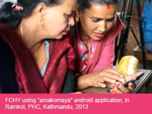 So immediately I contacted Mr. Shree Krishna Bhatta, DHo of Administrative Division in Public Health Office to implement this project as pilot in Ramkot PHc. With the joint efforts, among University, Amayakomay team and Kathmandu District public health office have now been able to implement the program first time in Ramkot.” He added that, “Maternal health is a very critical issue. The recent data shows that MMR is 229 per 100,000 and neo-natal death is 33 per 1000 live birth, which is very high compared to other countries. Though government has planned to incorporate technology and ICT in Safe Motherhood program, it is the first time android application for pregnant women is being introduced in Nepal as m-health. It will ease the communication between rural pregnant women and health workers. The role of health workers and FCHVs will be very crucial to effectively distribute the information to every pregnant woman in rural areas. The m-health is about pregnancy issue now but other aspects of health will also be incorporated in future.”
