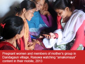 18 pregnant women from Dandagaun Village of Rasuwa district have accessed internet from their mobile at first time to download periodic information related to their pregnancy situation. After the introduction of the “Amakomaya” an android based mobile application in 10 different villages of Rasuwa, Nuwakot, Kaski and Myagdi districts more than 350 married women have been encouragingly registering downloading and exchanging pregnancy related content from the internet. Binod Poudel, from Dandagaun village of Rasuwa District have purchased android mobile set in NRs 6,000 (US $60) only to use the “Amakomaya” android application for her wife. Binod said Amakomaya application have increased the value of his mobile in his village and specially in his family. The project team leader, Mr. Rajendra Prasad Poudel said, “Amakomaya has encouraged women from the underserved area to come online” . Nepal has reached 73% of mobile penetration but access to internet connection is limited upto 27%. Applications like “Amakomaya” has been motivating women to access the internet and get benefited from it.